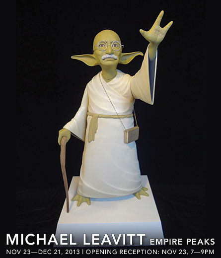 ![]() In his latest series of sculptures Leavitt juxtaposes classic archetypal roles embodied by fabled Star Wars characters with a famed cast of pop-culture personae. These unique, hand-carved works can be viewed at the Jonathan LeVine Gallery exhibition page Michael Leavitt Empire Peaks at JONATHAN LEVINE GALLERY. For inquiries regarding prices and availability please contact info@jonathanlevinegallery.com. |