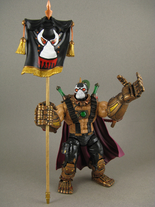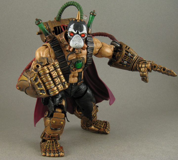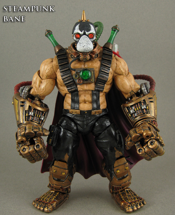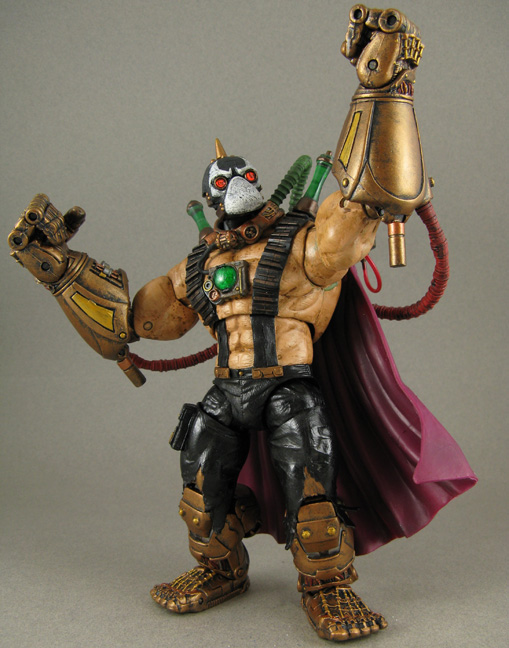 Here I've created another DC Steampunk figure, Baron Bane! He's huge and heavy with the main body of a Walmart Avengers movie Hulk, Mecha Hulk lower arms/legs, War Hulk mask, Megablocks Halo backpack, and all sorts of steampunk-ish tubes, pistons, and vials. Different metallic effects, leather straps, and other fodder parts were used to detail him and he even comes with a banner that he can hold high into battle. Now Baron Bane seeks to bend the Brass Knight over his mechanized knee and add Gothaven to his growing territory! Last edited by JinSaotome; 04-29-2013 at 11:31 PM.. |