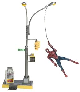 Web swinging Spiderman. This one is particularly awesome as it comes with a crosswalk sign and newspaper stand.   |