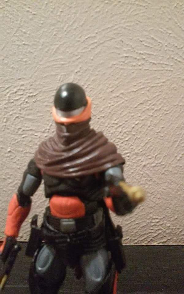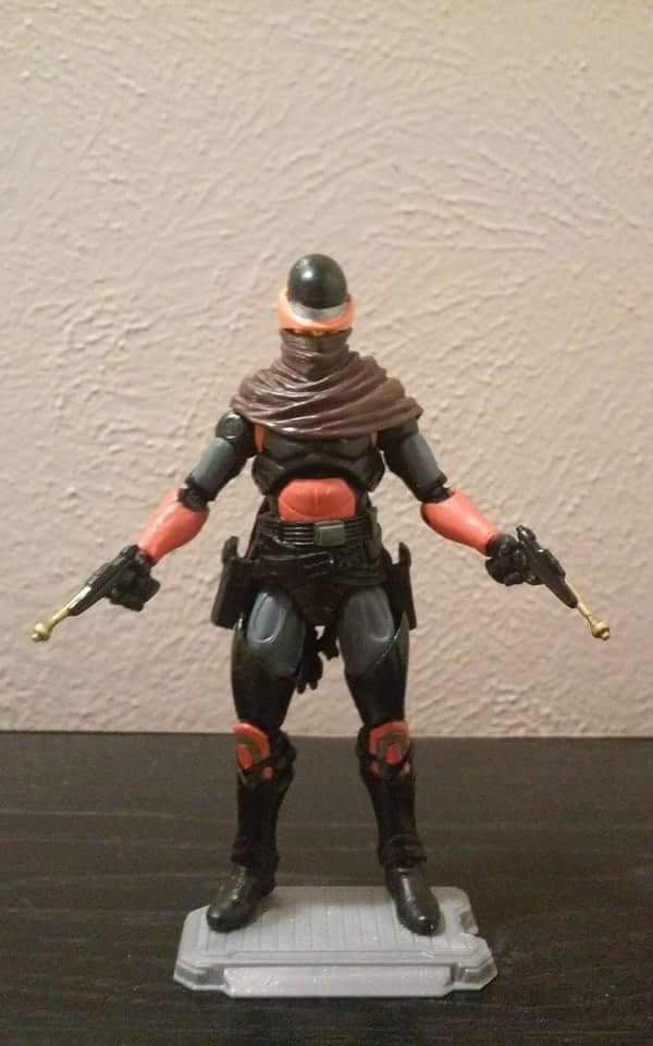 Real Name: Unknown Race: Human/Cyborg Affiliation: Bounty Hunter Powers/Skills: Possesses a pair of cybernetic eyes that can create a hypnotic gaze that forces his opponents to suffer from paralysis and intense fear. His eyes also allow for superior vision which allows for perfect targeting. However his eyes are extremely sensitive and cannot withstand direct light of any kind. Has military training that makes him proficient with most firearms and explosives. Expert pilot, hand to hand combatant and linguist. Can perform minor medical treatment Weapons: Wields a pair of dual pistols that fire energy blasts. Each pistol can be set to stun or kill. His helmet offers protection from all forms of light. His suit of armor allows protection from bladed weapons to a large explosion. The armor also enhances his strength. Bio: Kharon is one of the world’s most notorious bounty hunters. There is no job he is unwilling to take, for the right price, and he will do whatever is necessary to ensure success. He possesses no known code of ethics or morality. He will turn on anyone in a split second. Almost all his actions are criminal but due to his high success rate, they are often overlooked. There has been much speculation of his past and just exactly who he is. Many who have dared to look into his past have never survived the experience. After years of hunting, Kharon has grown bored and has contemplated retirement. However there has been some recent news of a new bounty. A bounty that could provide a challenge. A bounty called “Saber.” Recipe: Head/Helmet/Wrap/Guns/Belt: Custom casts from Broken Arrow Toys Body: Marvel Universe Extremis Iron Man Hands: GI Joe Iron Grenadier Destro Lower Legs: Movie Thor Kharon was created when I was coming up for a custom of one of my friends. He wanted to be a villain so this design is what I came up with. However I liked the look so much that I made a version for myself, with a few tweaks, and decided to incorporate him into my own universe. I have had the figure done for quite awhile but he was without a name. About all I knew for sure was that he was a bounty hunter. His look reminded me of an old west desperado or something. When I decided to enter this contest, he was the only custom I hadn't submitted yet that I felt would be a good entry so I quickly hit the internet looking for a name. Once I found the name "Kharon", which is the Greek name of the ferryman of Hades who carries souls of the newly deceased across the rivers Styx. It felt like a good fit and I love using those types of names for original characters. All his gear are custom casts from Broken Arrow Toys. As a matter of fact the gun belt, which is fully functional, was made by me and I sent it in to get made into a cast so that it is all one piece of plastic. I am quite fond of how well it turned out. |