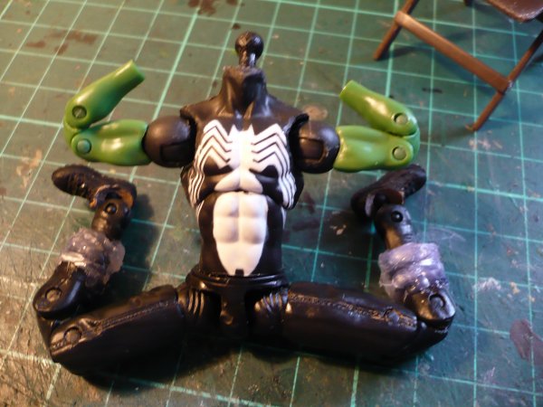 Was inspired by Obi-Shinobi how-to and did my own with slight differences. TORSO is a MU Black clad Spiderman. Modded the neck for a double ball joint for extra head articulation. Works a treat but not decided on head choice for this custom yet. Also sanded down the sides to allow greater articulation from the arms for action/firing poses. As I do with all my two part torso figures, I increased the articulation slot front/rear for greater upper torso movement back and forth. Still has swivel waist as well. SHOULDER BALLS are also MU Black Clad Spiderman. ARMS from MU She-Hulk. HANDS either GI Joe articulated or will use the Revoltech hand custom method (leaning to the latter). WAIST, THIGH BALLS, LEGS are WWE BnB. SHINS are from Marvel Showdown Spiderman with BBI modded feet. The hot glue at the bottom of the legs is more to help form the bloused out Combat pants, that will be getting sculpted onto the figure. Will also remove some of the Ab shape with sculpting and do the collar. She-Hulk arms will be sculpted to look like combat sleeves. Lastly the shins will be sculpted to be more like boots. Bar articulated toes and fingers, cannot thing of anything else. ![]() ![]() ![]() ![]() ![]() ![]()