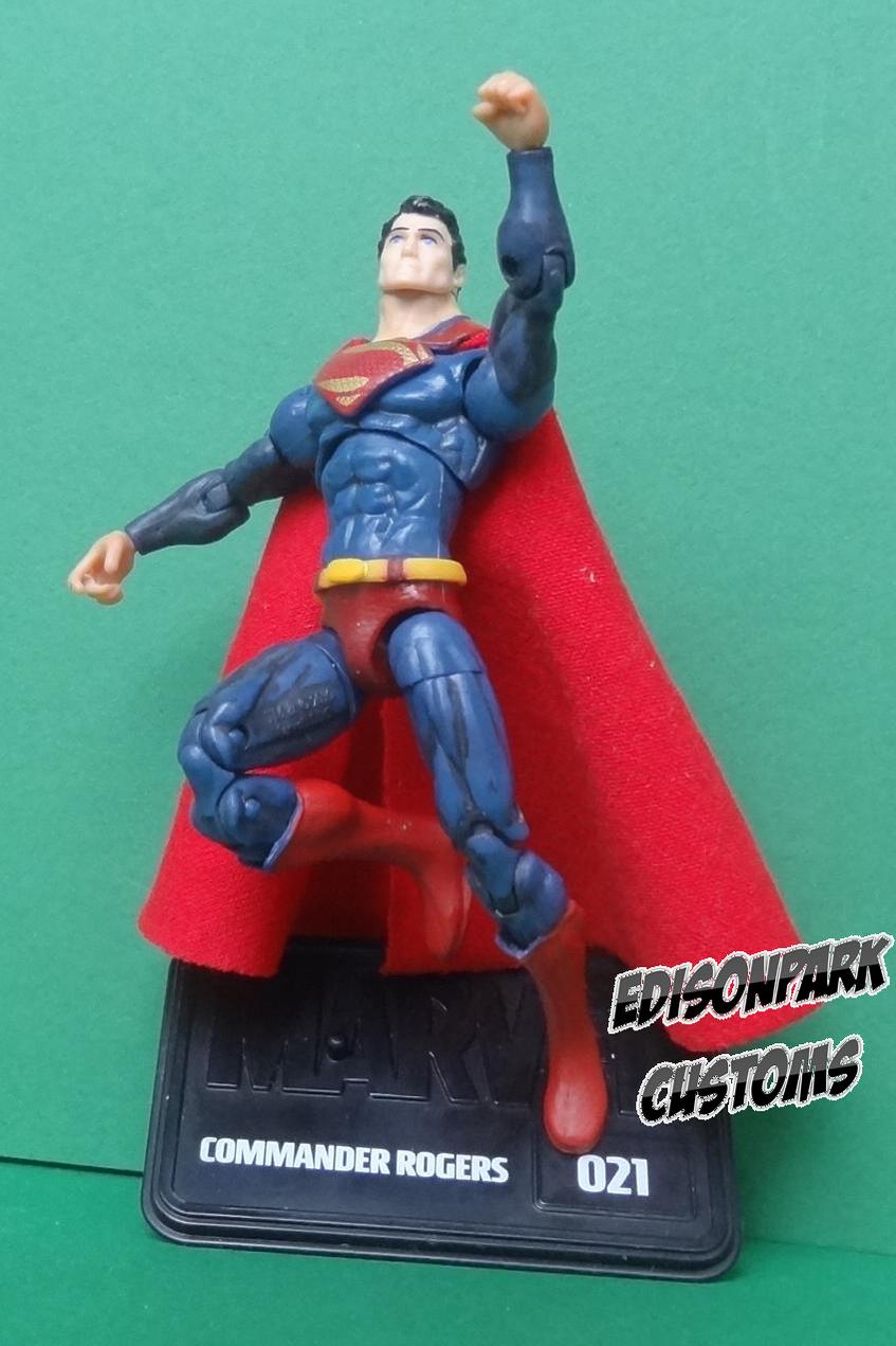 I made this custom from: MU Steve Rogers Captain America and Man of Steel (Superman Split Cycle) head, boots and symbol. Hands from X-Men origins Wolverine: Logan (claws removed). Also I removed the paint(Commander Rogers symbol). Only red pants painted. Hope you like it! Thank you for looking! |
