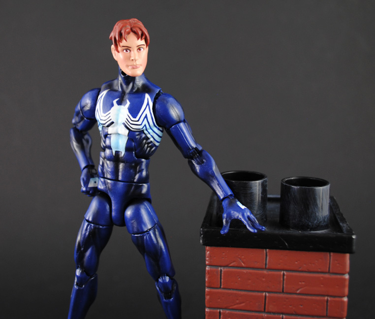 Spider-Man is back in black as I present to you yet another Symbiote Spidey in attempt to make the perfect one. This custom black costume Spiderman was created using the Superior Venom body and Scarlet Spider head/hands/feet. Here I basecoated Spiderman in a blue-purple and gave him black muscle shading as well as light blue eye/symbol gradients. It's all about practicing with the airbrush now. A cast Peter Parker head was added and now I believe I have the final Symbiote Spiderman recipe I'll ever need!