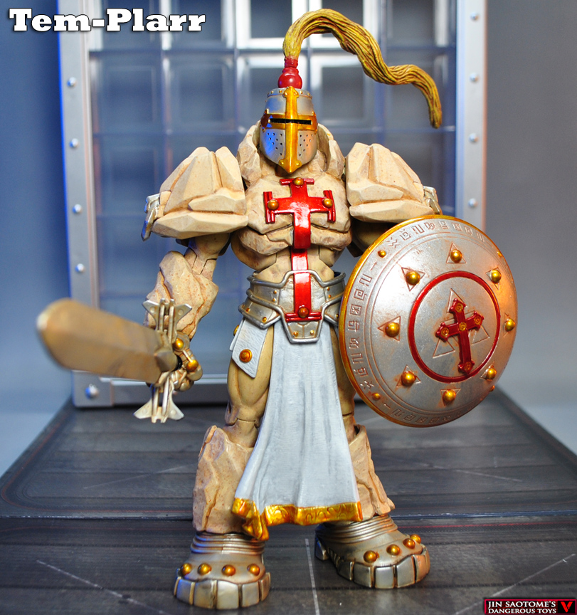 "From another world wrought with war and unending darkness comes a warrior that battles with a righteous fury. Tem-Plarr's mission was to seek out evil and destroy it. Once finished he could finally rest...until a mystical Time Portal of Skeletor's design opened up. Reactivated and detecting forces of darkness the valiant knight reached Eternia where a host of corruption was present. Beware the might of this knight Hordak, Skeletor, for stone and steel cannot be reasoned with!"