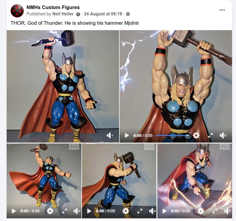 Custom THOR figure based on his look from 1994 Fantastic Four cartoon. He has been animated with AI. If you want to see these thumbnails moving, go to my site. It is pretty cool to see this figure using his powers.There are more videos as well