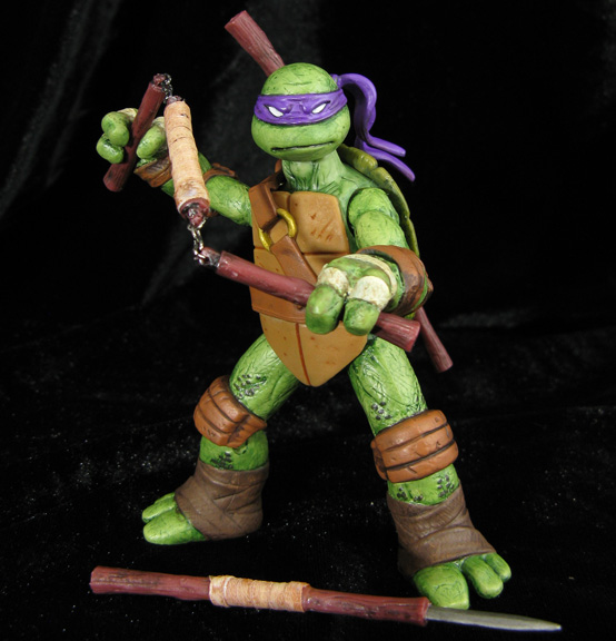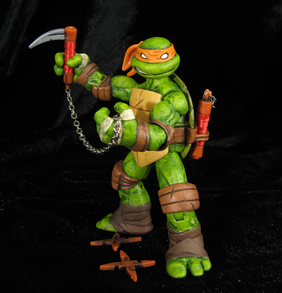 You have been emailing me, asking when I was going to put out a customized set of the 2012 Teenage Mutant Ninja Turtles Nickelodeon figures. I've been listening to your suggestions and ideas and tried to incorporate all of them into these figures. Their neck joints were modified for better range of motion as were their elbow and knee joints. A full detail job was done and ink-rub was used to soak in and bring out their reptilian skin features. Sewer weathered wrist wraps, bandana, and back of shell details too! I filled in the front shoulder holes so their form looks more flowing as well.