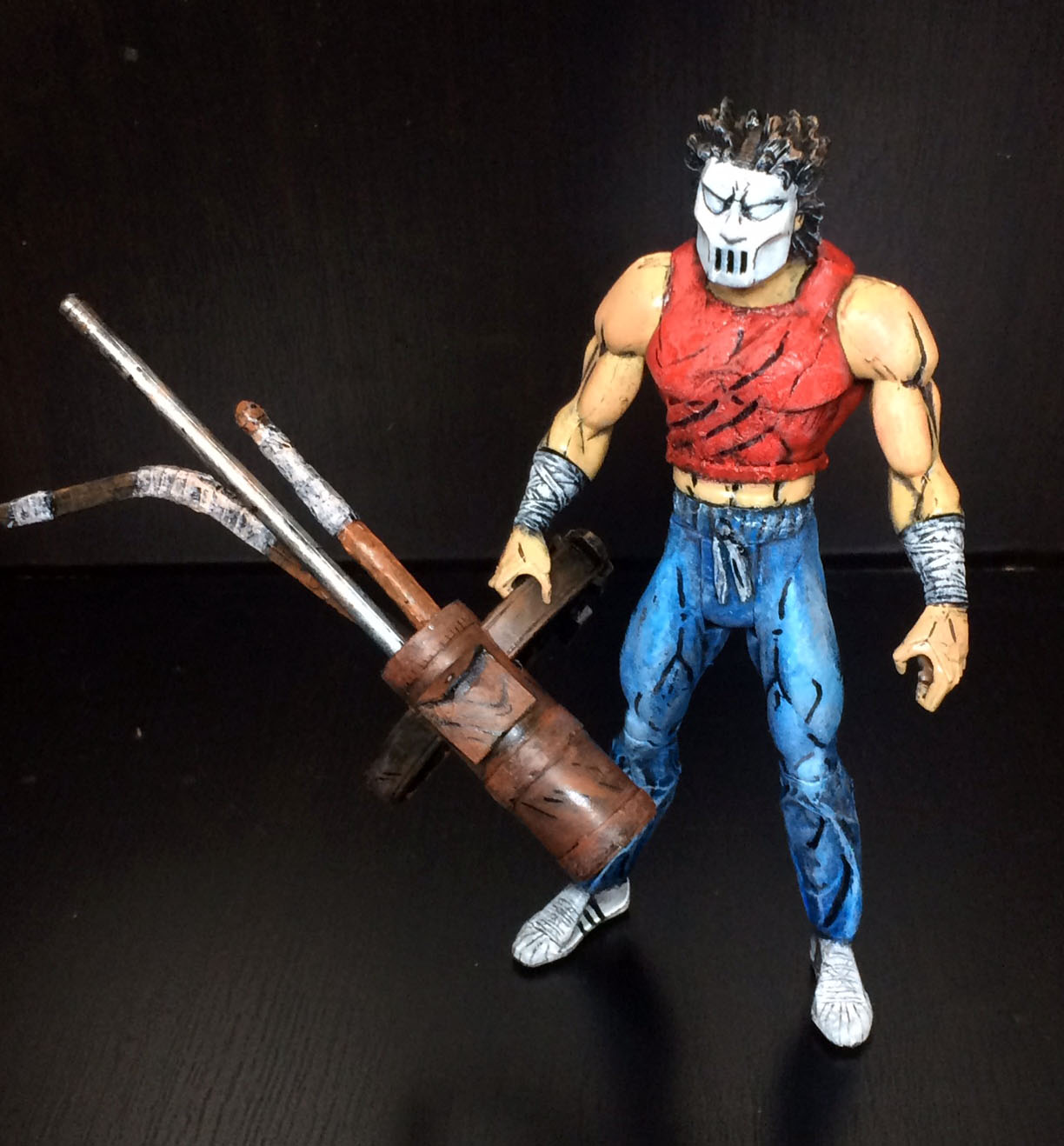 Hi There, first let me introduce myself! I'm Alvin from the Netherlands and I started customizing a month ago. I'm an artist and graphic designer so painting on a figure was working on "Just another surface". I love the NECA TMNT Mirage line so when I got a vintage Casey Jones in a lot I immediately grabbed an 6 inch batman from my son's never used action figures pulled his head off and started customizing a NECA style Casey Jones!