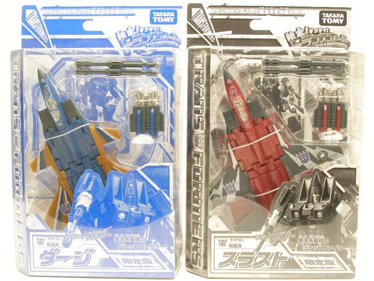 I hope Thrust and Dirge can be brought over here next year, they are far superior to the Botcon versions which had stubby wings.