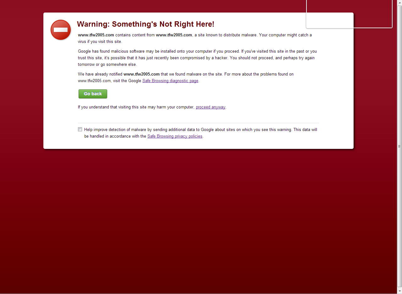 why is my browser blocking tfw2005.com? it says that it has been reported that tfw2005.com has been spreading malware so its block from my broswer (google chrome)