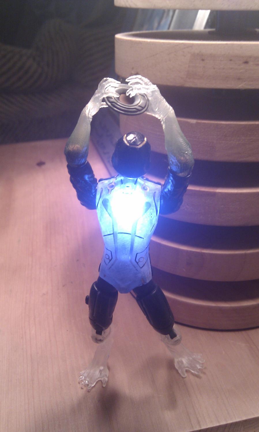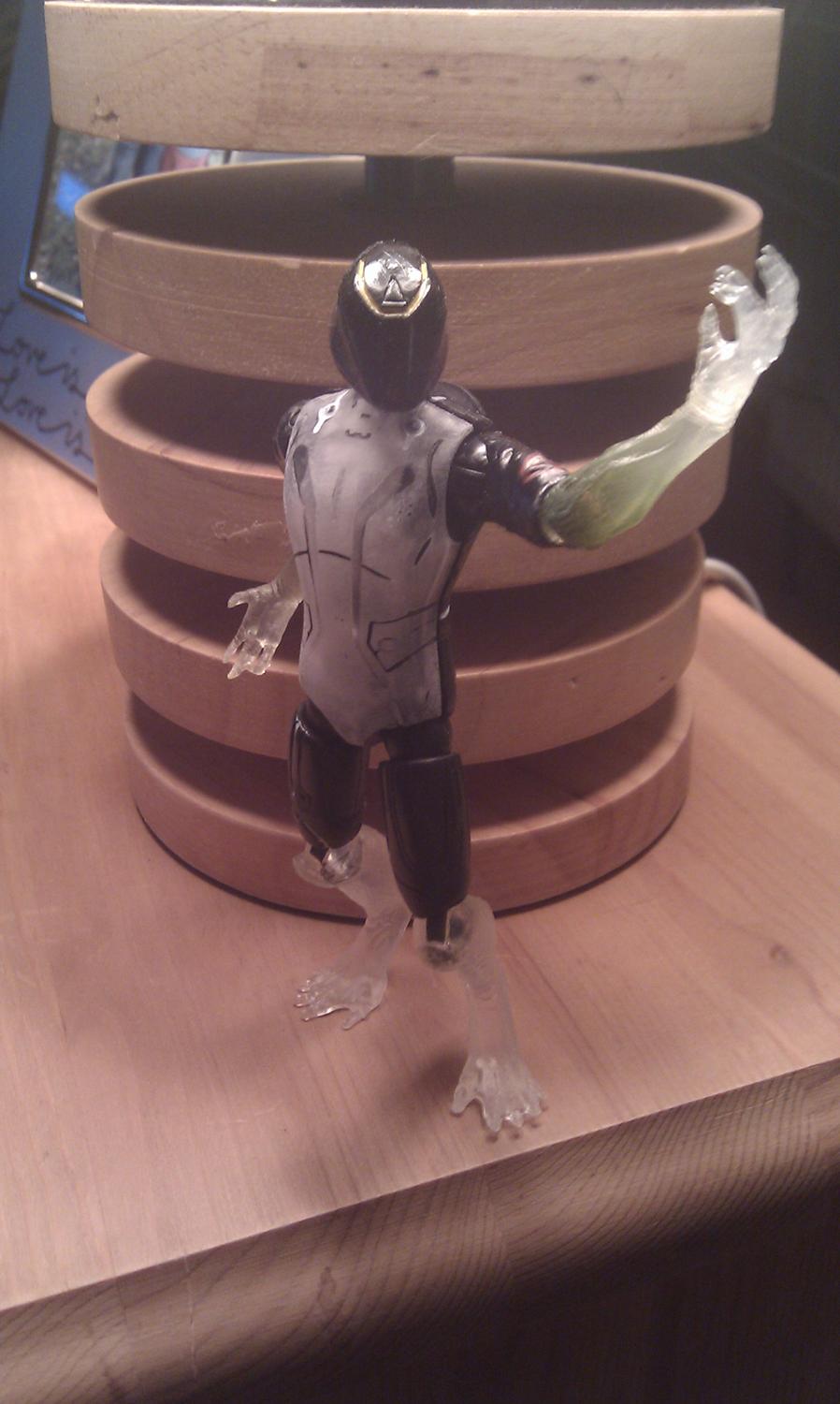 Hi there, so recently my local Dealz has been selling a large stock of Tron movie figures at €1.50 each, so I thought it time to try my hand at some experimenting. Spiderman movie toys are also to be found half off in Tesco, so I pounced on the Lizard. I saw a custom Tron Virus type character a couple of weeks back and wanted to emulate it with the materials I had at hand so I came up with the result below, I just fooled around to get him in assembled and I think I have the core of him worked out now.