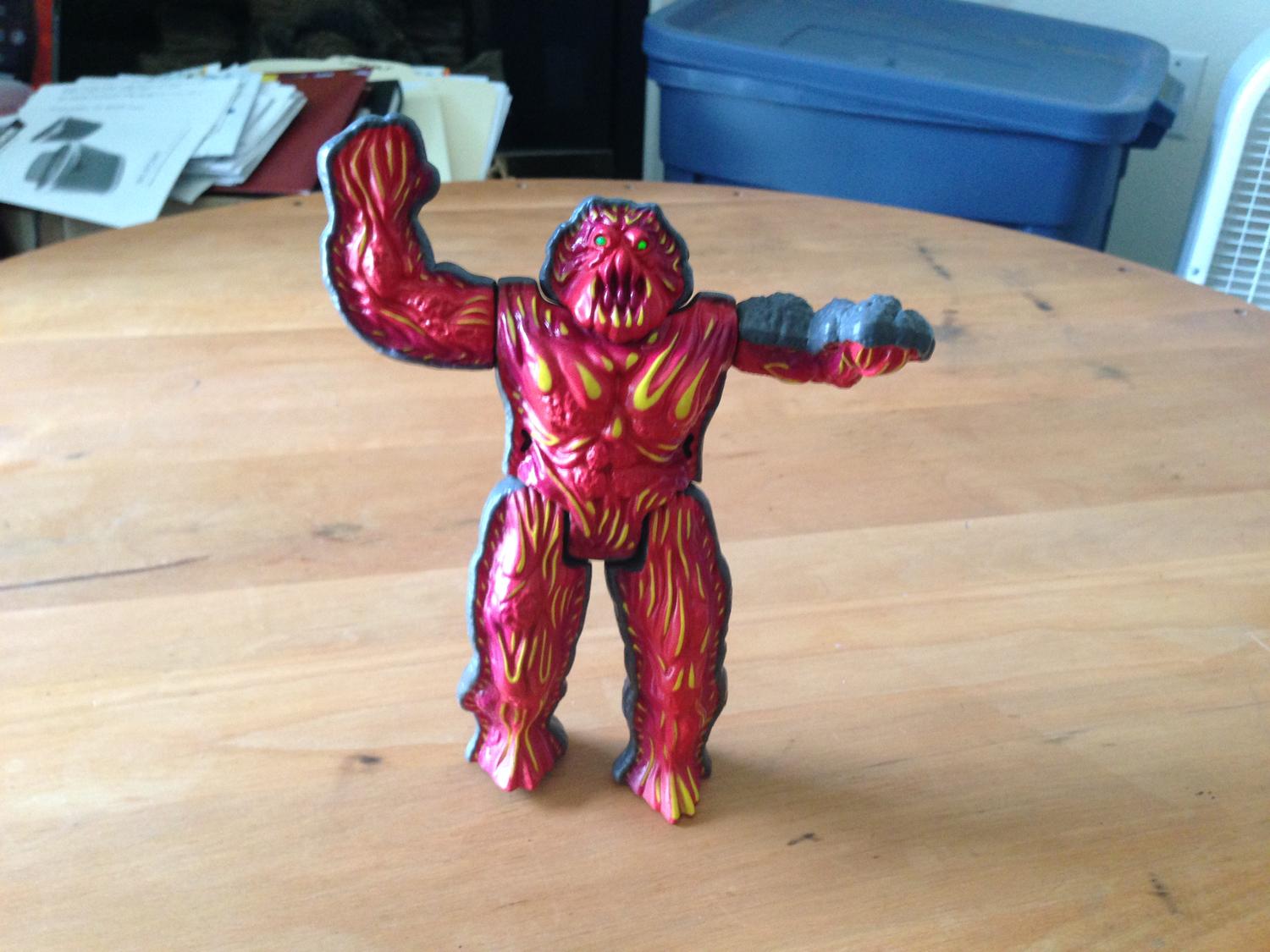 I'm trying to identify this rock/magma monster. It's from the 80s. The rock front comes off revealing a magma monster. It also has a translucent green top on its head that goes through to its eyes so you can shine light into it to give it light up eyes. Any help is appreciated! |