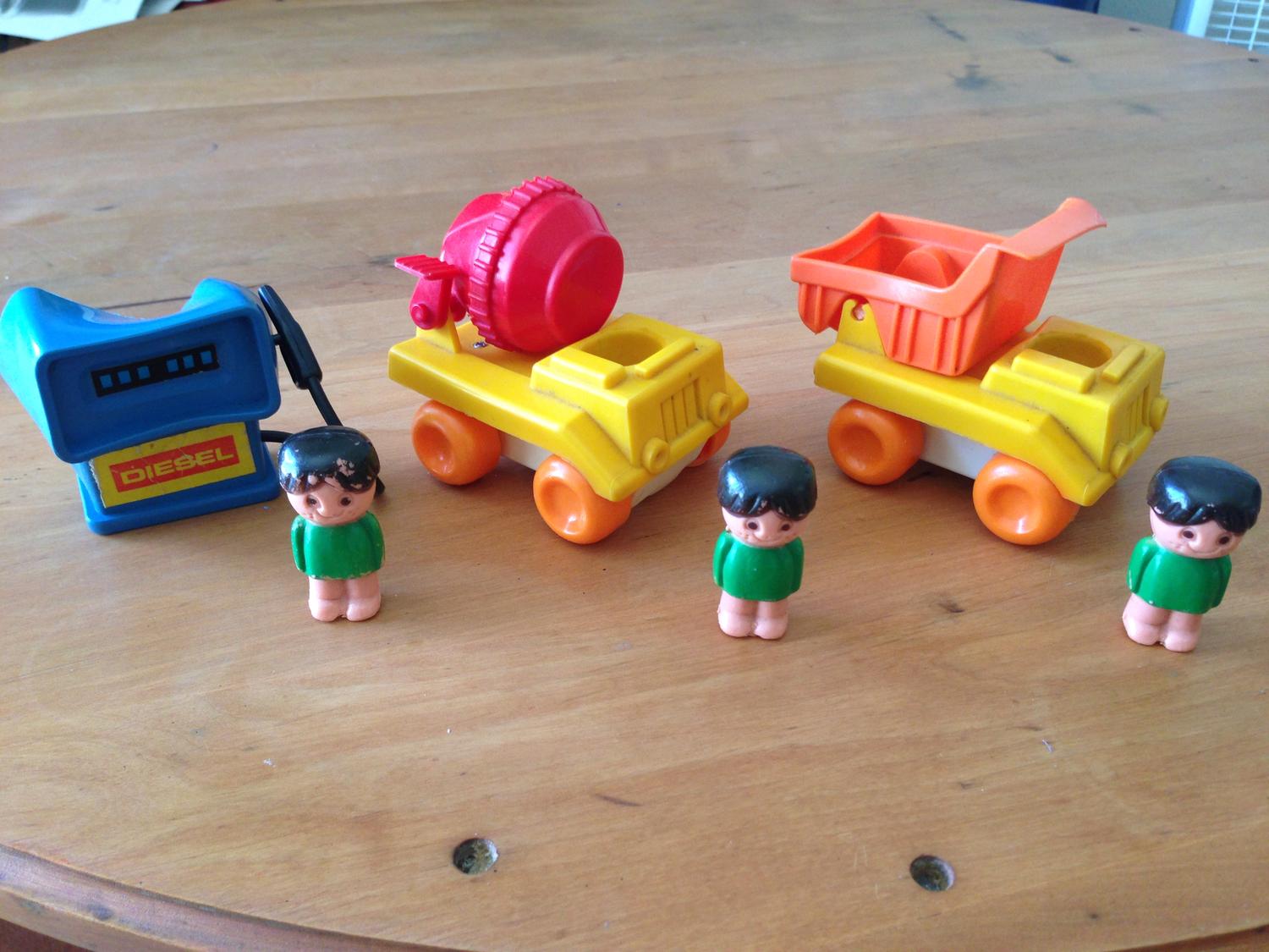 I'm trying to identify these pieces. They are made by Arco, which is stamped on the bottom of the dump truck and cement mixer. They are also stamped with 1977. Usually this is enough to find something on search engines, but my searches have come up fruitless. Any help is appreciated!! |