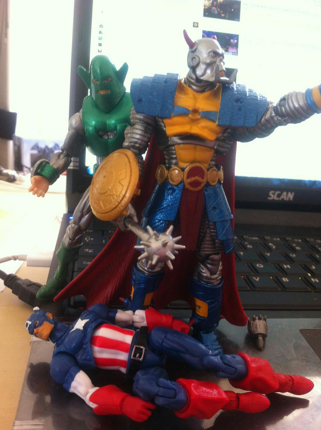 My mate at Action Figure Supplies just dropped off my Wave 2 figures and they're very cool, particularly Death's Head II. I like Whirlwind way more than I thought too. The paint work on Steve Rogers is a bit poor though, they haven't even bothered to paint the leg joints where his trouser stripe crosses the knees. I passed on Beta Ray Bill, She Hulk and 80s Thor.