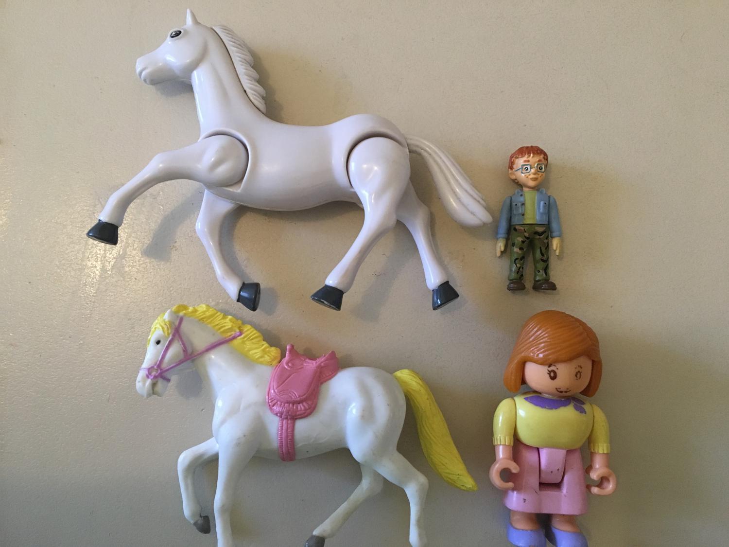 ![]() both horses are unmarked, the white one has articulated legs. the girl figure is unmarked, the boys is stamped 2009 Prism Any ideas? |