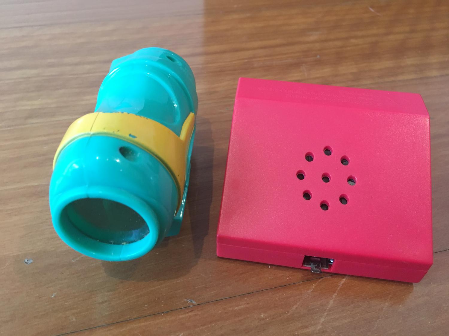Pic 1 / center / bottom, i think is a blue playmobil axe tool.