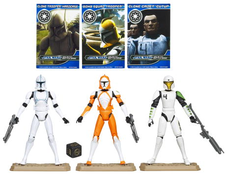 Check out this sweet Clone Wars 3-pack, coming our way in early 2012!!! The Republic Clone Troopers Battle pack consists of Clone Trooper Cutup in his Domino Squad training gear, a Bomb Squad Trooper and Clone Trooper Hardcase!
