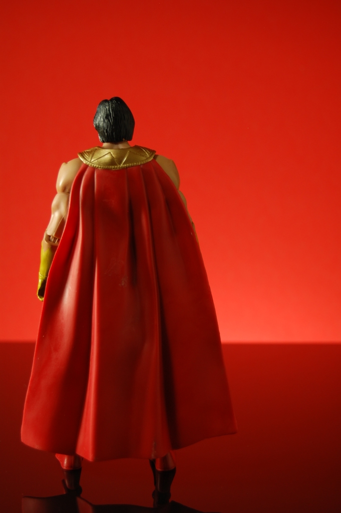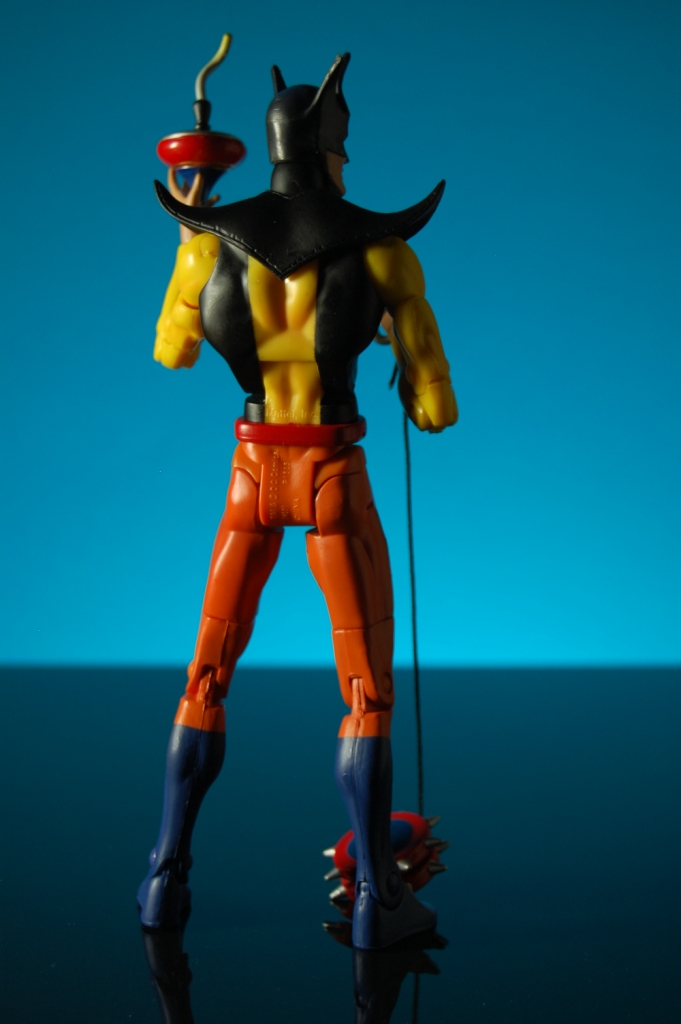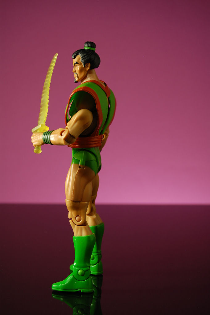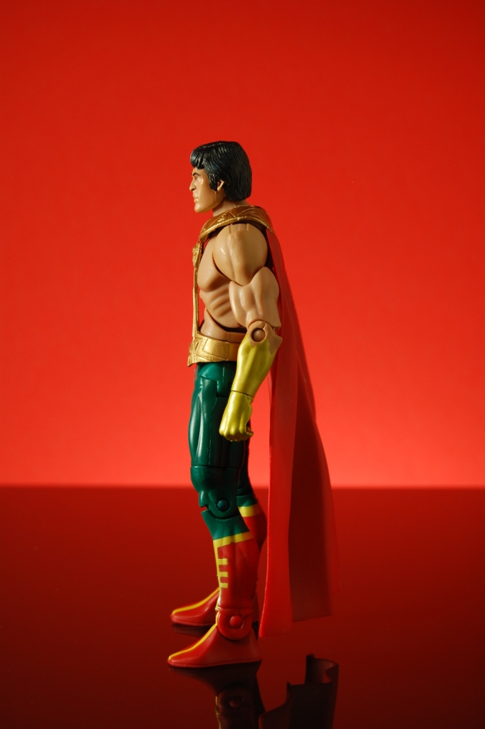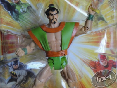 He comes with no accessories, with the acception of the upper torso for C&C Apache Cheif. Which I guess is okay, since he never really used anything with the acception of magic in the show anyways. The sculpt features a new head sculpt and belt/collar/cape combo, but it seems to sit a bit high and give the figure a sort of 'no neck' look. His articulation isn't limited, with the acception of the head, thanks to the high collar. The combo, however, is cast in a nice, non-flaking gold color. The paint on the head seems slightly off and much thicker paint apps appear to be used. So, all in all, he's rather lackluster and boring and the head sculpt seems to have suffered some flaws, but like I said, this figure will either be a Love it or Hate it type depending on your love for the Super Friends cartoon. Enjoy the attached photos, thanks to TheFwoosh!