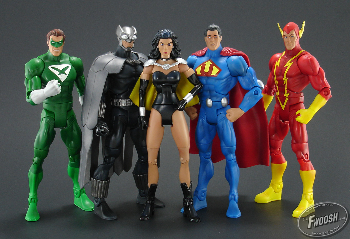 Today, thanks to our friends over at The Fwoosh, we have our first in-depth look at this hotly anticipated set, the last of the Wal-Mart exclusive DCUC offerings, which should be hitting shelves some time later this summer! The first figure contained within the set is Ultra Man (El-Kal), the leader of the Crime Syndicate. He is a vast improvement over the original version released in a 2-pack back in 2007. He sports a great head sculpt with lots of detail and although his costume is basic in nature, the colors look great and his chest logo is crisp and clean. He sports silver ovals on his belt, but they don't hinder articulation one bit. Basically, this version of Ultra Man puts the older one to shame. He's a great, modern take on the character that looks great alongside the other members of the Crime Syndicate. Articulation is basic and he has no accessories. Second within the set is Superwoman (Lois Lane), who makes use of the standard Wonder Woman body and is a figure who turned out better than I thought she would. Her head sculpt looks great, allowing her to appear both tough and feminine at the same time. She has newly sculpted boots and a nice, soft cape that match her comic counterpart very well. The sculpt on the cape is very intricate with a lot of fold lines and cinching; it is also the perfect length as it only reaches down to about her belt line. Again, articulation is standard for a DCUC figure and she comes with no accessories. Still, she looks amazing! Next, we have Power Ring. A figure who's costume matches his comic counterpart well, even though some fans have been complaining his boots should be white. To be honest, I've seen him wear the green boots in the comics and, I agree with The Fwoosh when they say the green boots simply look better than white ones would have. Again, head sculpt is awesome, making Power Ring appear very ticked off about something. I have only really started to warm up to these angery faces of late, and Power Rings has to be the best thus far (sorry Sinestro Corps Batman). His look is great, paint is flawless and crisp. No accessories. Standard DCUC articulation. Up next we have Johnny Quick (Johnny Chambers), the anti-hero version of Mr. Barry Allen. Done in his classic style, this figure is simply awesome! His coloration is superb, all of the lines on his costume are crisp. He has some subtle wash on the red, the yellow really pops and he has actual boots, not just painted lines. The head sculpt is great and features a real smug look and a slightly off centre glance, as if he isn't paying attention. He is a perfect baddie for the Flash and man, does he ever look awesome! Same standard articulation and no accessories. Finally, we have my favorite of the bunch, Owlman (Tomas Wayne Jr.). This figure is perfect in every way with nothing in the way of flaws. Done in his modern appearance, his head/helmet sculpt is right on and finished in two different tones of silver. His facial expression is very cold and calculating and does some serious justice to James Wood's character in Crisis on Two Eaths. The cape is made of a very soft plastic so it does not restrict the articulation too much; all of the different layers are sculpted and the separation at the bottom does not restrict the leg movement at all. The owl clasp is also a very nice touch. He has the ribbed cuff on his wrists and boot tops with an all new belt. The dark, dark blue color of his costume is superb and it has some nice, subtle washing and dry brush that brings some dimension to the muscle tone. Articulation is standard and Owlman got the only accessory within the set - an Owlarang. So, there you have it! This is perhaps the most anticipated and best 5-pack Mattel has given DC fans since the lines launch in 2007. It features some of the best head sculpts I have ever seen and I must say, Owlman easily belongs in the Top 10 best DCUC figures to date! As with the Legion of Superheroes 12-pack, it appears this set may be due for release some time around August or September, so keep your eyes peeled. This will be the last of the DCUC Wal-Mart exclusives and seriously, you don't want to pass this set up! While we await the release of this set, enjoy the attached photos supplied by our good friends over at The Fwoosh and I defy you to look at the Owlman shots and not hear James Wood's voice in your head discussing the possibility of alernate earths! |
