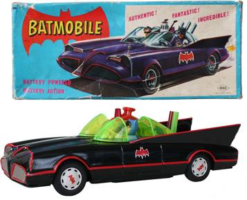 FOR SALE, AT AUCTION, WITH NO RESERVES SATURDAY, JULY 17TH, 2010 at 10am ET Over 800 Great Toys Sale will be held at Alexander's Inn Auction House 3607 Buckeystown Pike, Buckeystown, Maryland 21717 Preview 2 hours before sale This exciting sale will include Vintage Mechanical and Battery Op Space Toys, including Rockets, Robots, Aliens, Creatures and Monsters, Flying Saucers, Space Stations and Weapons, Satellite Stations, and more! Many of these toys are litho tin, dating from the 1930s through the 1980's, featuring original boxes with colorful space-themed graphics. The auction will also include many Space and Futuristic themed toys from a variety of Science Fiction and Space-related movies and television shows from the 1960s through the 1990s. The Star Wars universe is particularly well represented with vintage toys, collectibles and merchandizing dating from the initially released three movies: Star Wars (A New Hope), The Empire Strikes Back, and Return of the Jedi, as well as the newer additions to the saga: The Phantom Menace, The Clone Wars, and Revenge of the Sith. There will even be offerings related to the Expanded Universe. Playsets, ships and other vehicles will be available to bid on, as will many, many representative action figures from nearly every line of Star Wars collectibles, including the Power of the Force and the Power of the Jedi. Many items are in original boxes, on card, and MINT! Star Trek collectors, too, will see items of interest such as toys, action figures, playsets, etc. from the original series, Star Trek: The Next Generation, Deep Space Nine, and others. Also available are fine collectibles from Space 1999, Buck Rogers, Flash Gordon, E.T.: The Extraterrestrial, The Black Hole, Aliens, Dune, Mars Attacks, Close Encounters of the Third Kind, and more. Vintage space toy lines including Star Team and Mattel's Matt Mason will be offered as well. A variety of manufacturers, including Bandai, Kenner, Mattel, LJN, Playmates, Ideal, Toy Biz, Mego, Galoob, Remco, Alps, TN, SN, Modern Toys, Hasbro, Marx, and more will be reflected in the many lots to be presented. The July 17th auction is also comprised of robots, aliens, creatures and action figures from popular animated / Sci Fi shows, including: Ultraman, Mighty Morphin Power Rangers, Sectaurs, Masters of the Universe, Voltron, and others. We are very happy to be able to bring you a selection of Kent Greenbaum's fabulous Outsider Art Robots. These great folk art robots are made from found objects such as old tin toy parts. Other toy categories will be amply represented as well. Vintage military and Construction toys, including battery-op and wind-up tanks, jeeps, bulldozers, vehicles, and pressed steel toys will be featured. G.I. Joe collectors will find a large variety of action figures, playsets, and accessories, including a vintage GI Joe Space Capsule and a large GI Joe Headquarters, the giant USS Flagg aircraft carrier (over 7 feet long), Terror dome set and more! For superhero collectors, lots comprised of action figures, playsets, and accessories will be proffered. Batman fans, particularly, will be interested in the large number of Batman figures, toys, Batmobiles, vehicles and collectibles --- many mint in box --- we have available for auction. Cowboy toy aficionados will find lots to attract their attention, too. Still accepting quality consignments for this sale! |