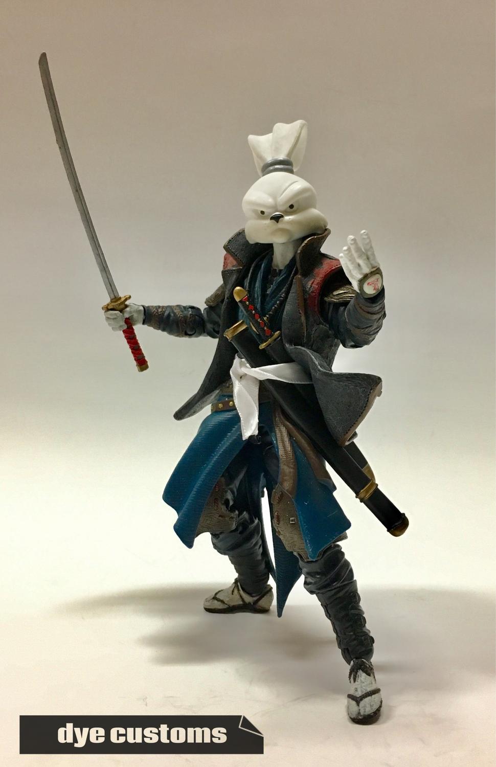 Here is my take on Usagi Yojimbo... His head is a TMNT Usagi. Hands, feet and jacket are from a McFarlane Onimusha 2 figure and the body is a Marvel Legends Dr. Strange. What I like about this figure is that it shows how just a small amount of painting mixed with the right parts can make a great custom!