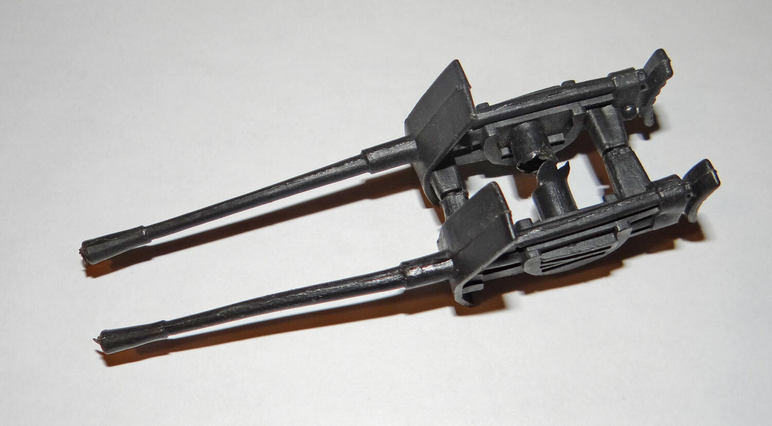 Here's a double-barrel gun that is approx. 3" long. Both pieces fit together perfectly, looks like some other part fits in between both pieces? Or, maybe a figure fits on this somewhere, looks like each piece has a shoulder rest. It's black and made of cheap, bendy plastic. Any help to ID this part is greatly appreciated! Jeff |