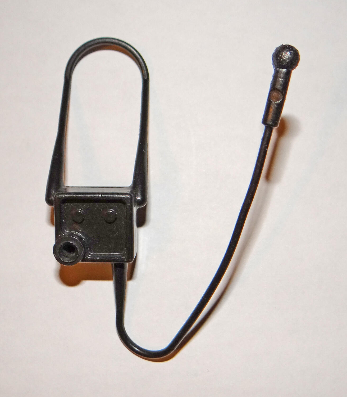 Couple more mystery pieces. The first piece is some kind of video recorder or camera with a microphone and neck strap. Approx. 3" tall and made of hard, shiny black plastic. Looks like Marx but too small, would fit a Marvel Legends size action figure but I can't think of a vintage line with that size of figure. Looks like it would belong to a figure from the 1970s.