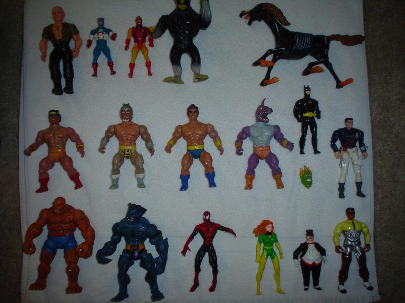 Mattels Ghostbusters figures(Can be loose): Egon(SDCC) Winston Peck Mattels MOTU Classics(Can be loose): Horde Scareglow Haves, pictured below: Remco Figures, looks like the Masters Of The Universe knock offs, dated 1982 - $4 each A couple of Dungeons and Dragons Toys $8 each Marvel Legends Beast - $12 Marvel Legends Thing - $10 Toy Biz Spiderman dated 1997 - $5 XMen girl dated 1995 (still lights up) - $5 C.O.P.S Figures from Hasbro - $5 each Penguin figure from Batman Returns - $4 Toy Biz Batman from Batman Movie with M Keaton - $5 (this one may be sold, still waiting to hear back from potential buyer) Secret Wars Captian America - $6 Secret Wars Iron Man - $5 Army guy? Not sure what line he is from...looks like Remco- $5 Thundercats Mumm Ra - $9 Chuck Norris Karate Kommandos Super Ninja - $14 Swamp Thing Snap Up - $5 Swamp Thing Arcane - $5 Swamp Thing Dr Deemo - $5 XMen Weapons X Wolverine - $4 Power Rangers Green Alien - $4 Purple Japanese Guy - $7 ( I have no idea what these figures are) Bettle looking Japanese Guy - $7 Part Of A bird (stamped Mattel 1986) - $5 Lanard Toys Karate Guy with Shirt Off - $4 1983 Remco guy in red (missing feet and arms -$4 GI Joe Big Collection of 45 figures - Make Offer Clash Of The Titans figure - $7 Battlestar Galactica Figures - $8 each Crystar Moltar figure- $6 Crystar Ogeode - $6 Crystar Dragon Rider - $8 If you have any questions feel free to ask. Send me an email at jaybolton21@hotmail.com. I only ship within the US. |