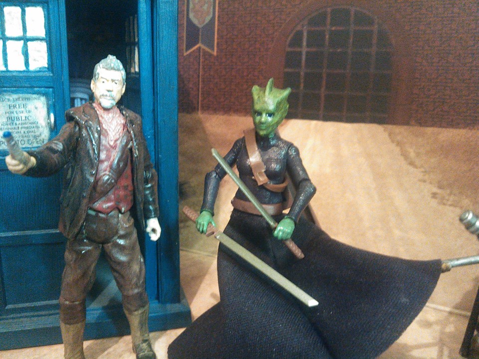 Here is an update on my original war doctor with a head cast from the bigger figure and a repainted tardis . And my Madame Vastra custom using a star wars body.