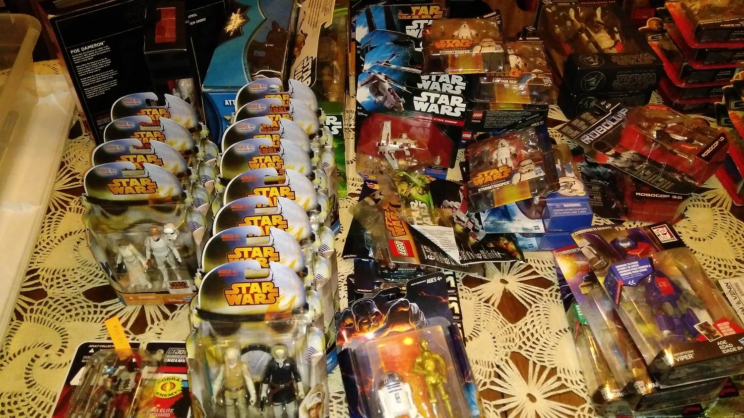 Came into possession of a MASSIVE collection contain just about everything you can think of. Black series starwars, master piece collections, marvel legends, retro figures, DVDS, articulated figures,G.I. Joe, transformers, DC, you name it, good chance we have it. PM me with any interest. There is far more than what I can attach. Just ask, if we have it I will send you proof.