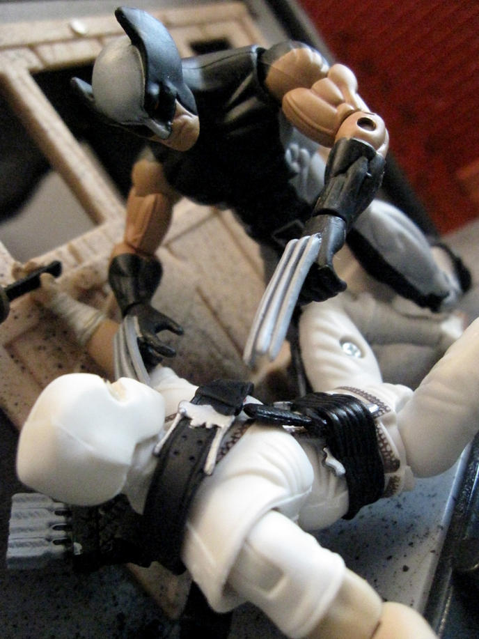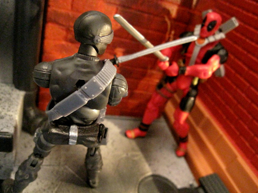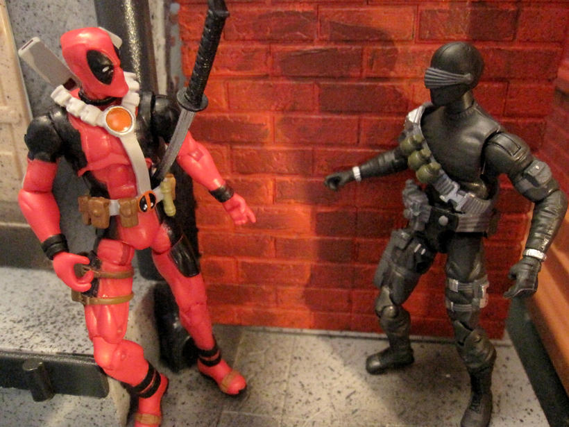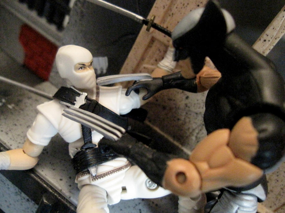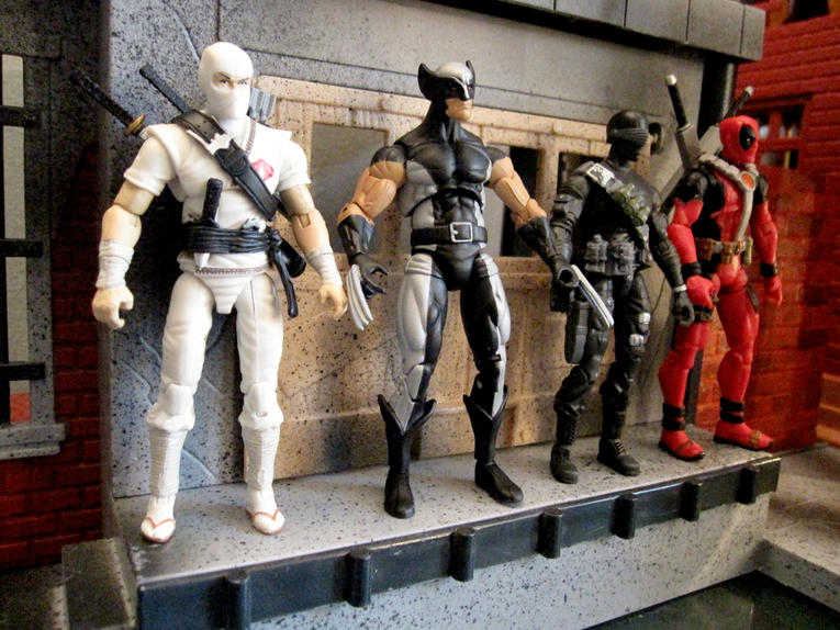 Here are some pics I took for fun. I gotta tip my hat to the pics topnotch97 posted of Dusty with Wolverine, Deadpool and Maverick. I gotta give it up to her for doing it first but I thinks mines are da shiz too! Someone mentioned, I think it was Flint, that they would like to see Deadpool fighting Snake Eyes and Storm Shadow. I added in Wolverine for good measure.
