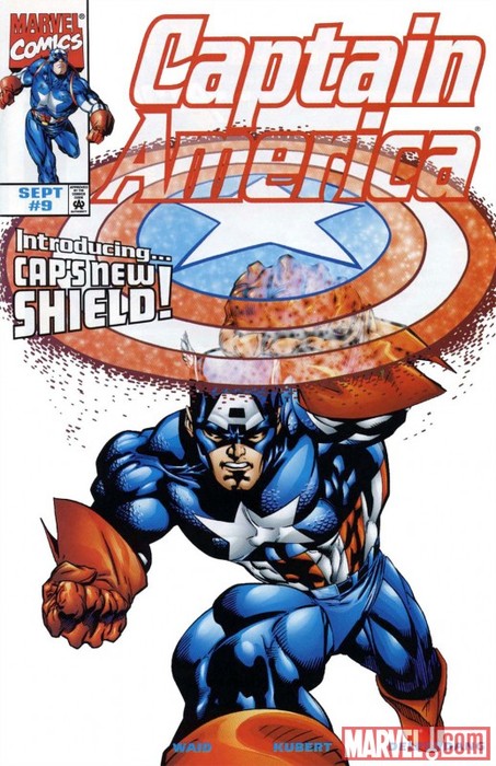 Commander Rogers doesn't carry the regular Captain America shield in the comics...he does however regularly use the photonic shield. |