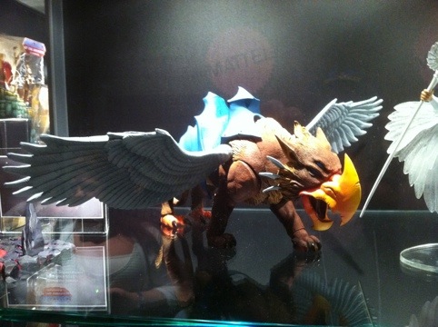 Some new 2012 MOTUC figures were revealed at PowerCon. YES!!! We're getting Stinkor (April club)!!!!!!!!!!! Slushead (from NA, May club), Griffin (April beast) and convention exclusive Temple of Darkness Goddess. Looks like a straight up Sorceress repaint, but she looks pretty awesome to me. She will be available at all conventions Mattel attends in 2012 except for SDCC, which will get its own exclusive. Also, another image of PowerPunch He-Man showing a cool power-effect accessory.
