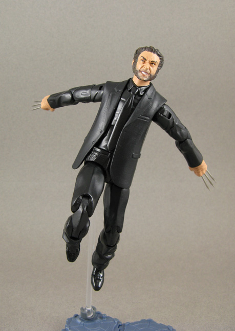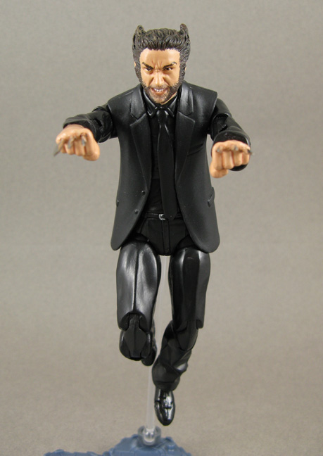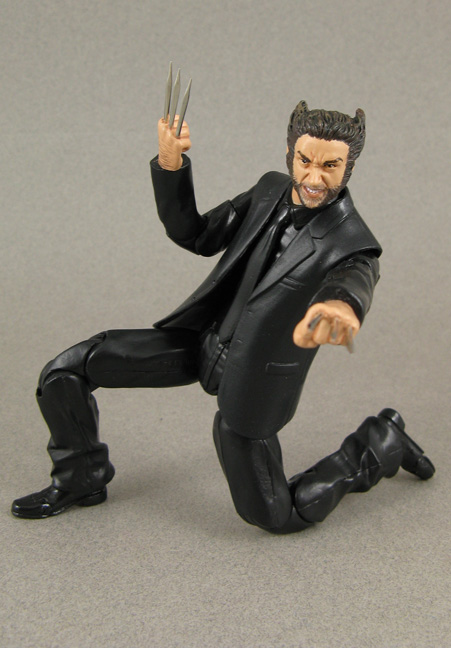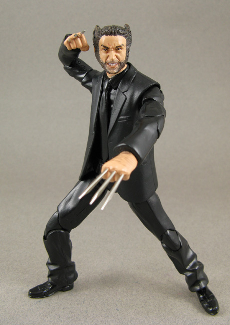 Ok I'm a sucker for superhero figures in general. I'm also sucker for civilian figures. But I'm an even bigger sucker for superheroes in their civilian attire so when I saw Wolverine sporting a black suit in the "The Wolverine" promo shots I just had to make 'office Logan'! He starts out using a repainted X-3 Wolverine head on the torso of a DC Universe The Blank upper body, lower body of a deluxe Buffy Angel figure, coat from Movie masters Ras Al'Gul (or Alfred) and some fodder fists. I resculpted some of the folds thicker and the cuffs as well. This odd mash-up gave me the most articulated, proportioned look for a suited body. Wolvie's claws are some nifty flared out metal needle tips. Now all that's left is that The Wolverine movie features him slicing through Ninja wearing a business suit for my life to be complete.