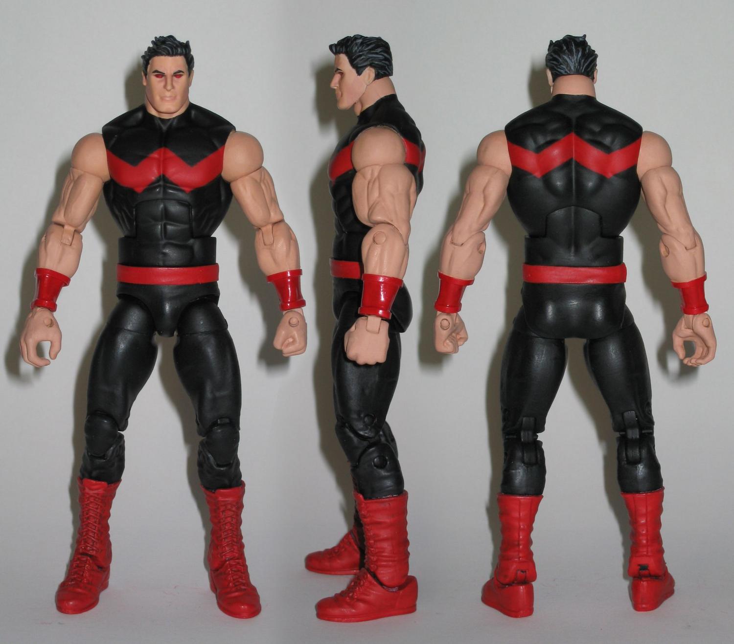 Well I decided to go back and update one of my older customs. I've been picking up a few WWE Elite figures for parts, and I decided to use some of those parts to update my Wonder Man. First I swapped the upper part of the lower legs to shorten him down a little. Then I decided to give new more ripped arms, and the new arm bands are made with thin strips of styrene. Finally I repainted his face, flesh tones, boots, and a little touch up.