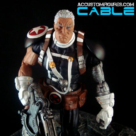 Cable was made from Rogers lower and Conan upper, Super Patriot arm, Cap gloves, and Grayson boots. Lots of fodder and the rest is sculpted detail. Finished him with a custom paint job metalic highlights, several shades of black and blue, and a bit of gun metal! Enjoy! See you in the future! AC |