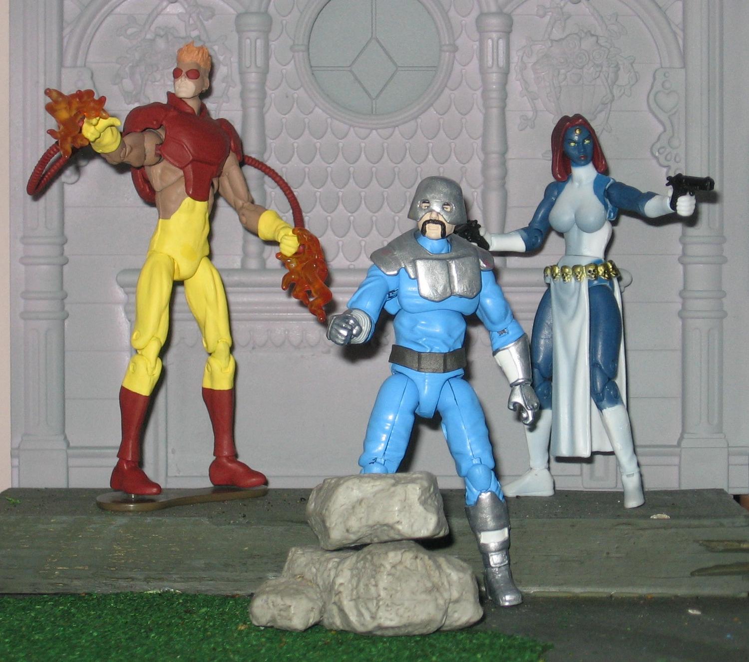 So I'm trying to put the team together and first up are Avalanche and Pyro. I was trying for a cross between the classic design and the Wolverine and the X-men animated series. I used mostly joe parts with a ROC Grenadier Helmet modded with green stuff. I'm not that happy with how it turned out so I'm sure I'll try again. Looking for a Wolverine: Origins Blob and next up is Crimson Commando, Destiny and Spiral. Hope you enjoy and thanx for looking! Avalanche Head = ROC Duke Torso = 25th Copperhead Arms = 25th Iron Grenadier Destro Lower Legs = 25th Zartan Upper Legs/ Helmet = ROC Iron Grenadier ![]() ![]() ![]()
