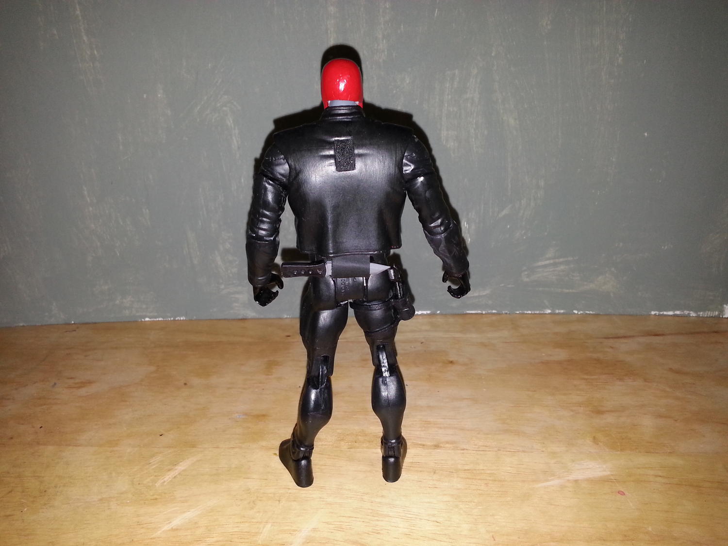 The head is from a Moon Knight head cast and the body is from a DCUC Mr Terrific (of course). The belt is from a Dynamic Duo Batman, the holster is from a Marvel Legends X Force Deadpool, the gun is from a Dollar Tree Army Figure, knife is from castingcave, knife sheath is custom made. Not yet finished as I'm still waiting for my Model Master Brown paint to arrive in the mail so the jacket is black for now.